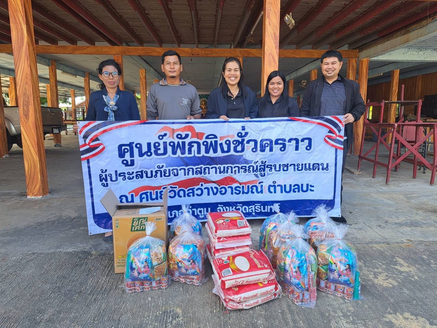 องค์การบริหารส่วนตำบลบะ ได้นำถุงยังชีพไปมอบให้กับพี่น้องผู้ประสบภัยจากสถานการณ์สู้รบชายแดน ณ ศูนย์พักพิงชั่วคราว ในเขตพื้นที่ตำบลบะ อำเภอท่าตูม จังหวัดสุรินทร์