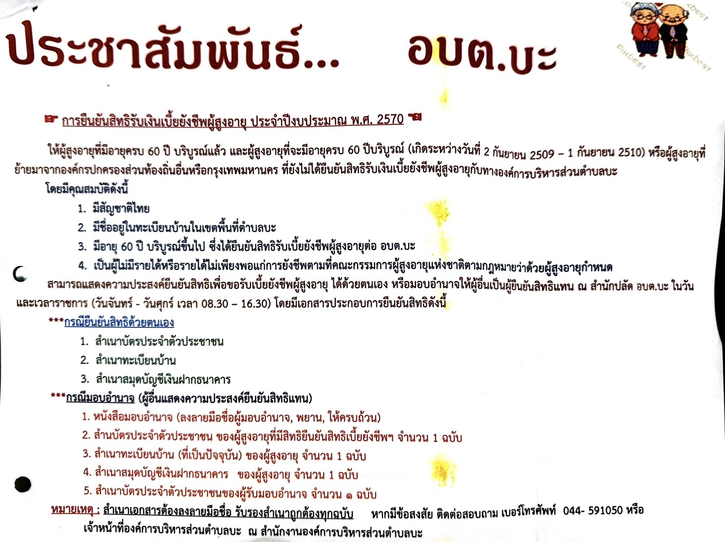 การยืนยันสิทธิรับเงินเบี้ยยังชีพผู้สูงอายุ ประจำปิงบประมาณ พ.ศ. 2570