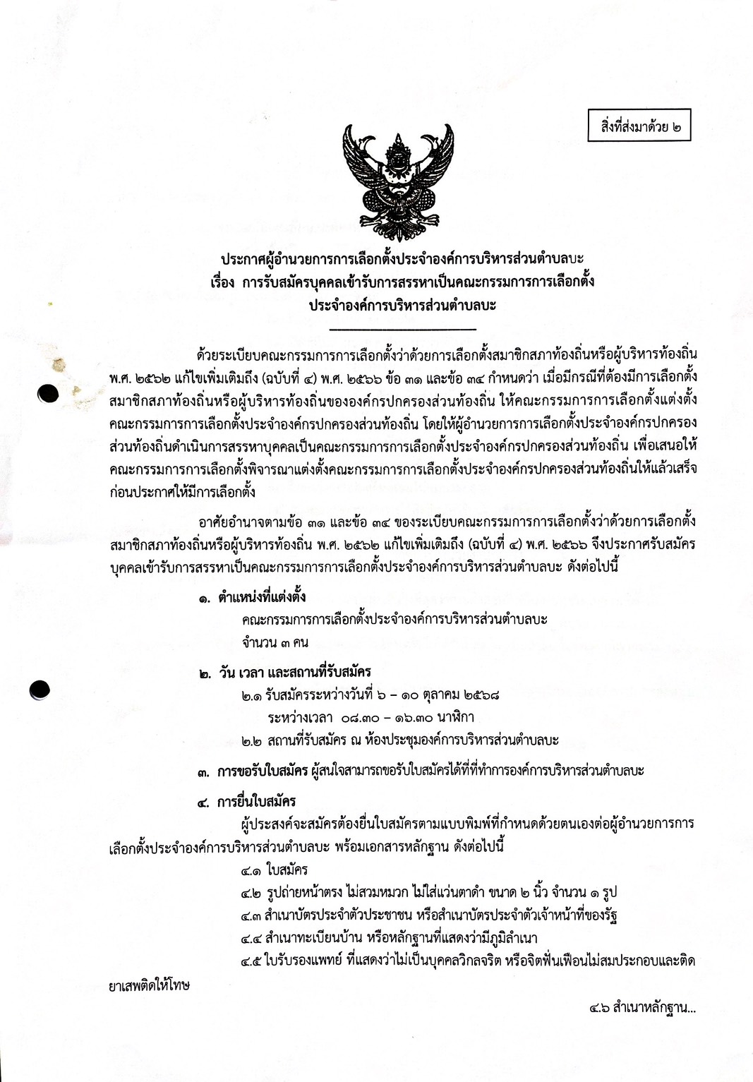 ประกาศผู้อำนวยการการเลือกตั้งประจำองค์การบริหารส่ว...
