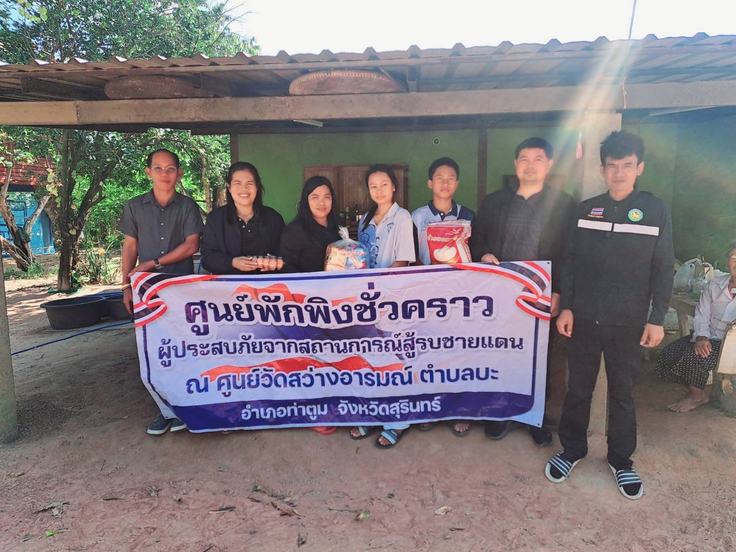 องค์การบริหารส่วนตำบลบะ ได้นำถุงยังชีพไปมอบให้กับพี่น้องผู้ประสบภัยจากสถานการณ์สู้รบชายแดน ณ ศูนย์พักพิงชั่วคราว ในเขตพื้นที่ตำบลบะ อำเภอท่าตูม จังหวัดสุรินทร์