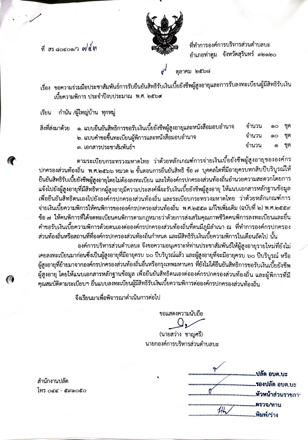 การยืนยันสิทธิรับเงินเบี้ยยังชีพผู้สูงอายุ ประจำปิงบประมาณ พ.ศ. 2570