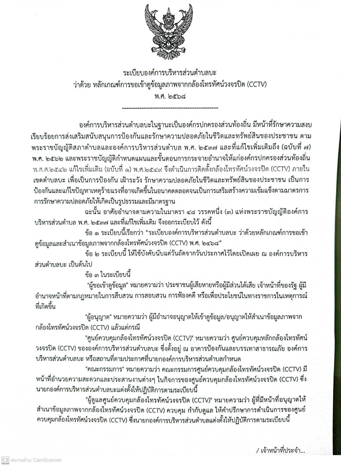 ระเบียบว่าด้วยหลักเกณฑ์การขอเข้าดูข้อมูลภาพจากกล้อ...