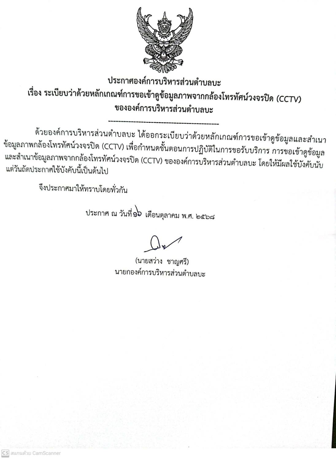 ระเบียบว่าด้วยหลักเกณฑ์การขอเข้าดูข้อมูลภาพจากกล้องโทรทัศน์วงจรปิด (CCTV) ขององค์การบริหารส่วนตำบลบะ